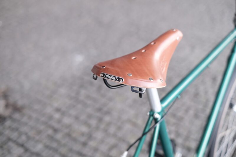 Brooks B17 era inegociável. O selim tinha de ser esse. A cor foi a Honey. Os pneus também tinham de ter alguma largura, já que o Pedro anda com uma bike cujos pneus são 700-28 – fomos para os WTB 700 x 36, bicolores.